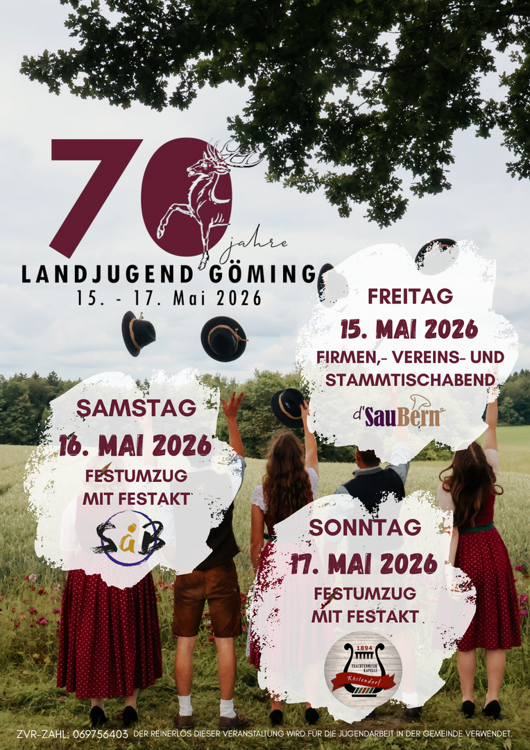 Die Landjugend Göming blickt auf stolze 70 Jahre voller Gemeinschaft, Tradition und Zusammenhalt zurück - und das möchten wir gebührend mit euch feiern!